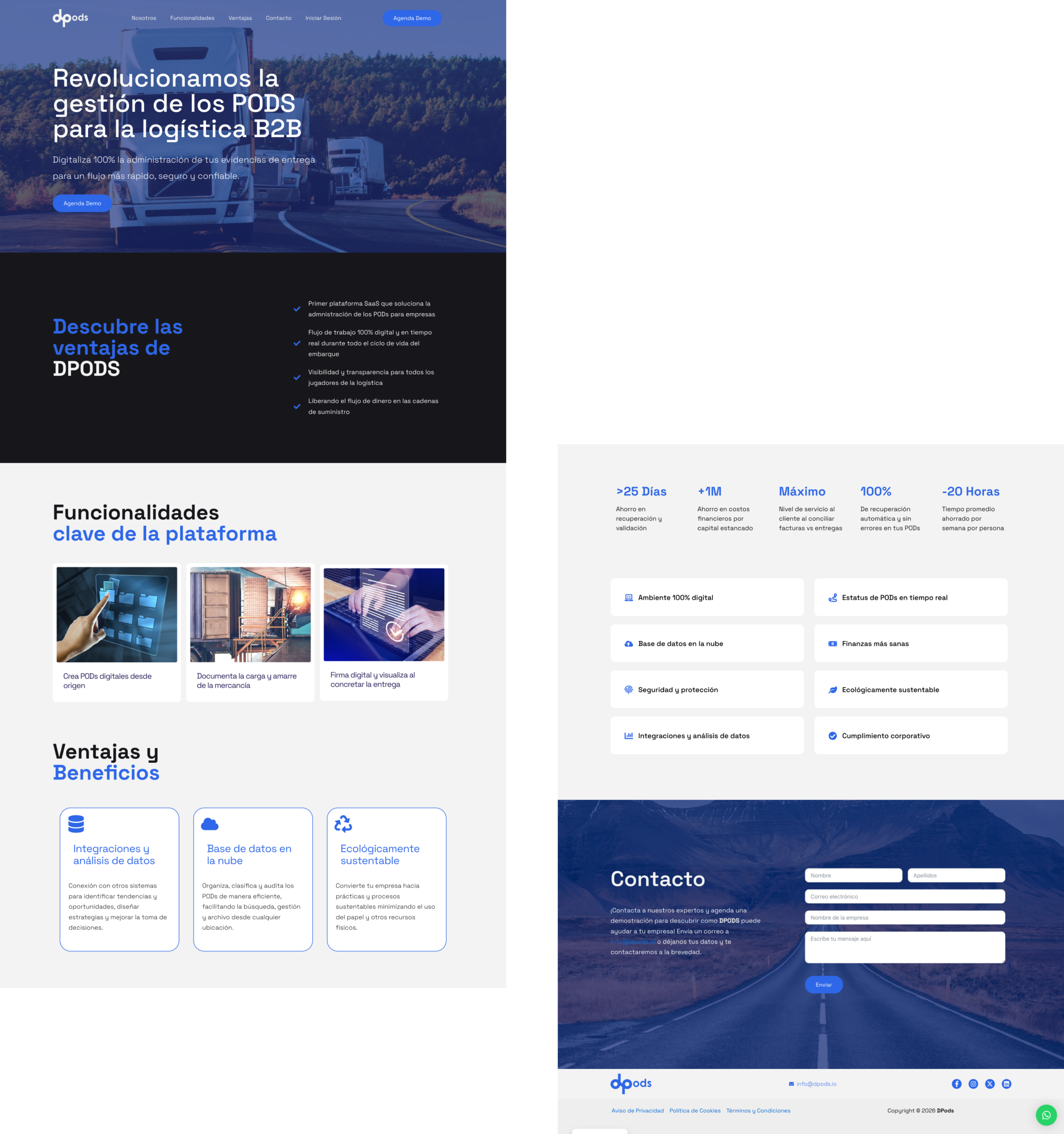This project focused on designing and building a landing page for dpods.io—a company specializing in the digitalization and management of Proof of Delivery (PODs) for B2B logistics. The page was structured to communicate the value proposition quickly, clarify how the solution works, and support lead generation through a clear, conversion-focused layout.