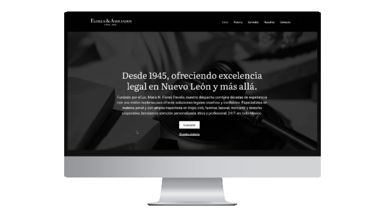 This project focused on designing and building a website for Flores & Asociados—a law firm based in San Pedro Garza García, Nuevo León, Mexico. The site was structured to present the firm’s services with clarity, strengthen credibility through a clean and professional visual system, and guide visitors toward contact through a direct, low-friction user flow.